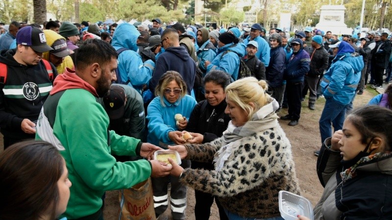 Después de una jornada de paro y protesta, los recolectores de residuos de Rosario llegaron a un acuerdo con el Ministerio de Seguridad de Santa Fe y levantan la medida de fuerza de este viernes. De todos modos, retomarán la recolección de basura a la hora cero de este sábado. Los trabajadores organizaron una concentración con sus camiones desde temprano en el Parque Independencia y luego se trasladaron a la Plaza San Martín, donde organizaron una olla popular para mitigar el frío.