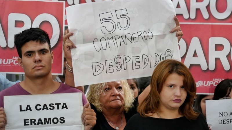 Con carteles y en actitud de protesta, siguen en la puerta de la oficina local para denunciar que unos 55 compañeros suyos fueron desvinculados al no oficializarse su incorporación a la planta de trabajadores del Estado. “Tenemos un total de 55 despidos en Rosario y Santa Fe, 28 son en Rosario. Son compañeros que pasaron a planta en noviembre, pedimos su reincorporación inmediata”, señaló uno de los trabajadores el jueves.