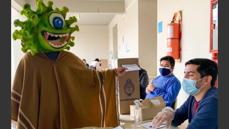 En las largas jornadas de elecciones nunca faltan los momentos curiosos. Un influencer conocido como "El bicho jujeño" concurrió a votar disfrazado de coronavirus.