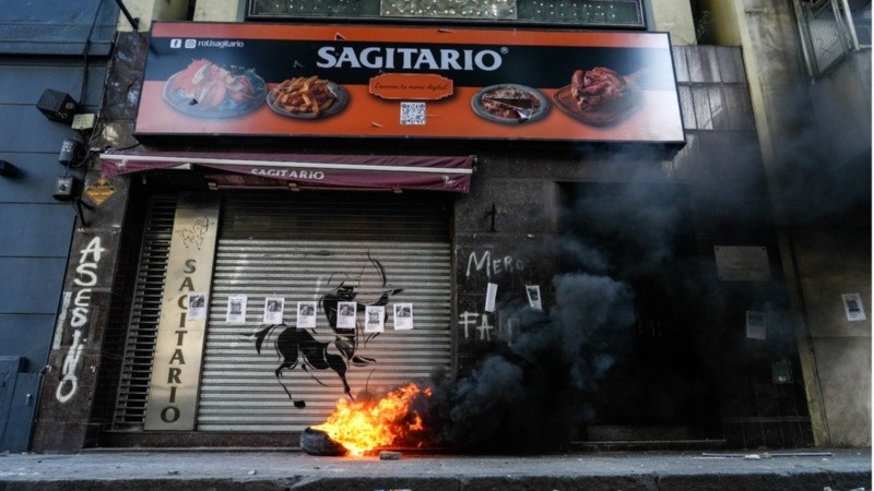 Otro de los presentes en la marcha, donde además de cantar prendieron fuego una cubierta y pegaron afiches con la cara del cadete en la persiana del comercio, sostuvo que seguirán con los reclamos hasta que el conductor de la camioneta “vaya preso”.