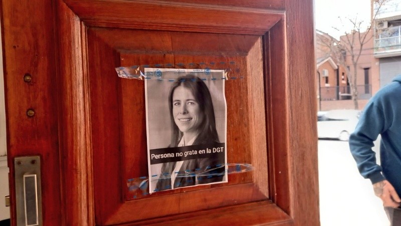 La sorpresa de las personas que este jueves por la mañana fueron a la Dirección General de Tránsito de Rosario era muy grande, al encontrarse con varios carteles pegados en los vidrios de las oficianas, con la cara de Carolina Labayru y una frase: "Persona no grata en la DGT".
