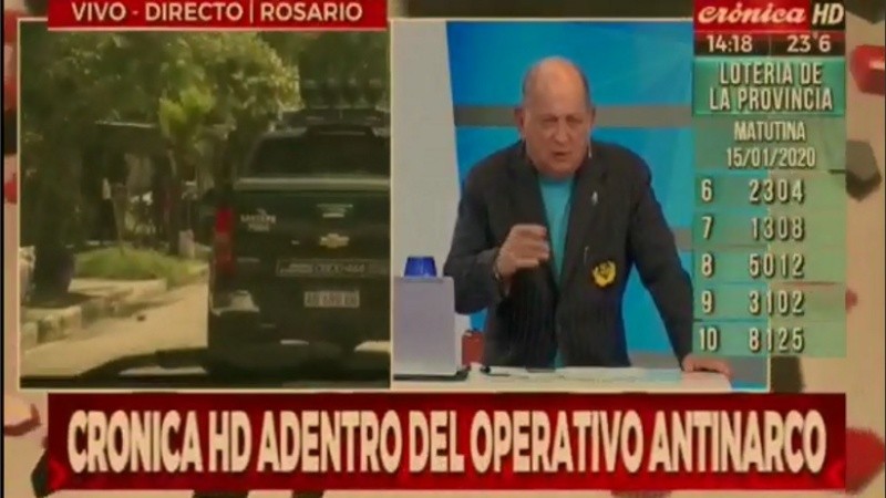 Este miércoles a la tarde, el periodista Chiche Gelglung presentó en el canal Crónica una nota desde Rosario. El cronista vino a la ciudad a participar de un procedimiento policial desarrollado en Las Flores. Sorpresivamente, como si se tratara de un escenario bélico, le preguntó: “¿Nacho estás con chaleco vos? ¿Estás protegido vos o estás ahí en cuerpito gentil?”.