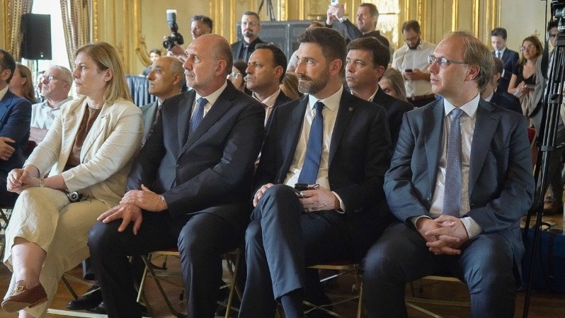 Lo particular del caso, es que el actual mandatario estuvo acompañado por el ex gobernador Omar Perotti. También estuvieron presentes en la firma del convenio la vicegobernadora Gisela Scaglia; el ministro de Ambiente y Cambio Climático, Enrique Estévez; el director ejecutivo de la Agencia de Cooperación Económica y Financiamiento Externo, Gonzalo Saglione; la directora para Argentina de AFD, Lorena Chara, y el Embajador de Francia en Argentina, Romain Nadal, entre otros.