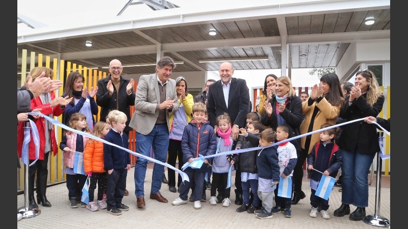 El gobernador Omar Perotti inauguró este jueves el Jardín de Infantes Nº 349 modelo pospandemia en la ciudad de Funes. El edificio posee una capacidad de 80 niños por turno y demandó una inversión de $194.730.413.