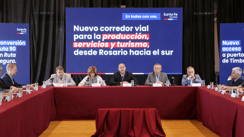 Este miércoles el gobernador Omar Perotti encabezó una reunión de trabajo con la ministra de Infraestructura Silvina Frana, intendentes y jefes comunales por el nuevo corredor vial para la producción, servicios y turismo desde Rosario hacia el sur de la provincia.
