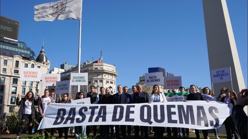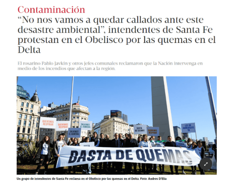 "«No nos vamos a quedar callados ante este desastre ambiental», intendentes de Santa Fe prrotestan en el Obelisco por las quemas en el Delta", tituló Clarín.