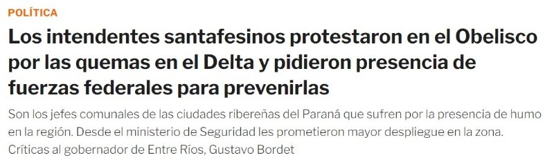 Durante la tarde se sumó Infobae bajo el título: "Los intendentes santafesinos protestaron en el Obelisco por las quemas en el Delta y pidieron presencia de fuerzas federales para prevenirlas".