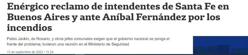 A media mañana, se sumó La Nación. "Enérgico reclamo de intendentes de Santa Fe en Buenos Aires y ante Aníbal Fernández por los incendios", titularon junto a la misma imágen.