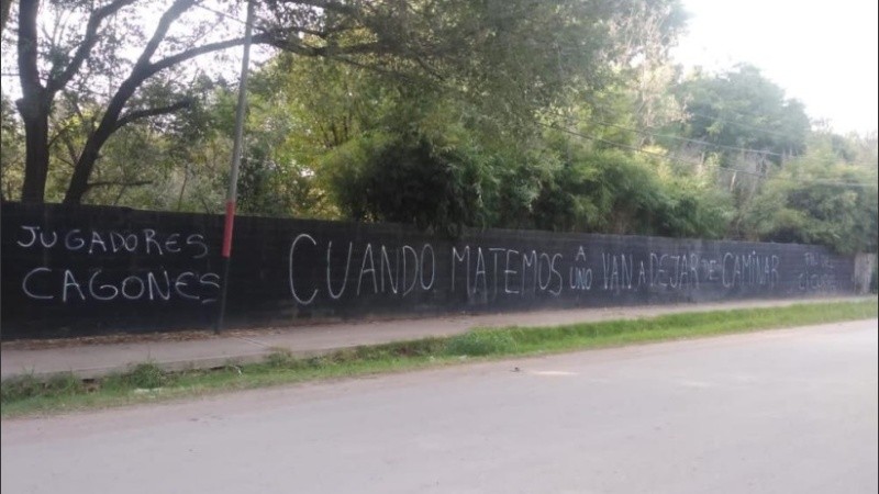 "Jugadores cagones. Cuando matemos a uno van a dejar de caminar. Fin de ciclo", indicaba la pintada hecha en una pared cerca del ingreso al predio.
