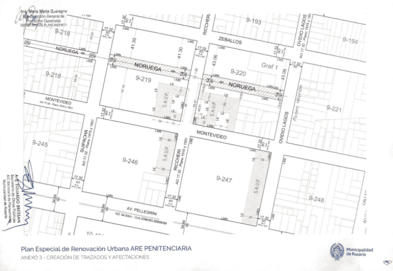 Pese a que la ordenanza abarca todo el territorio antes mencionado, según pudo averiguar Rosario3, la primera etapa comenzará sobre las manzanas 219 y 220 dónde se ubica la cárcel y la sede de la secretaría de Control y Convivencia. Una vez que el complejo penitenciario quede en desuso, se extenderá el trayecto del pasaje Noruega desde Suipacha hasta Ovidio Lagos, atravesando ambos terrenos.