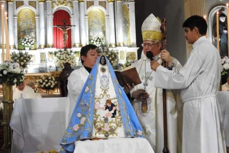 Pero no fue solo esa representación lo que indigó a parte de la comunidad, sino además el hecho de que el obispo Luis Urbanc, artífice de la visita de la vicepresidenta Victoria Villarruel la semana pasada a la provincia, la bendijo durante la misa matutina.