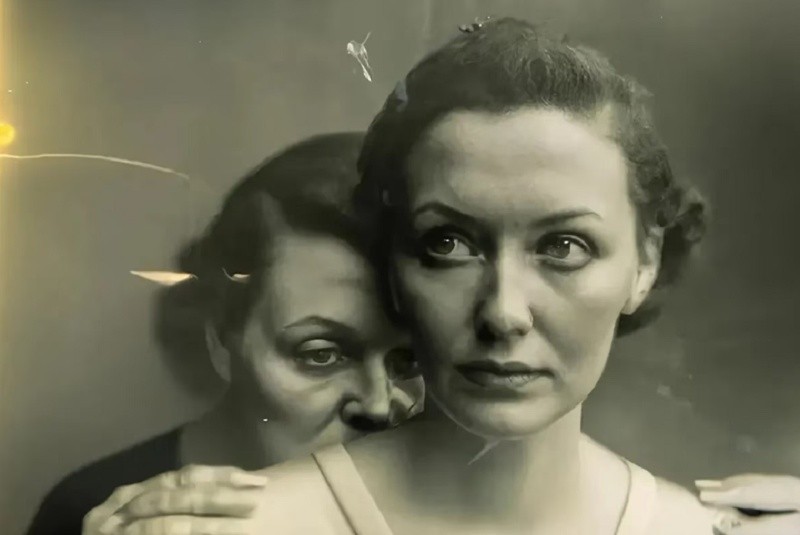 La imagen, de tono sepia, se titula "Pseudoamnesia: The Electrician" y muestra a dos mujeres de frente ante la cámara, en un estilo vagamente antiguo, como si se tratara de una fotografía de principios del siglo XX. Sony World Photography Awards le dio el premio a la mejor fotografía creativa en marzo.