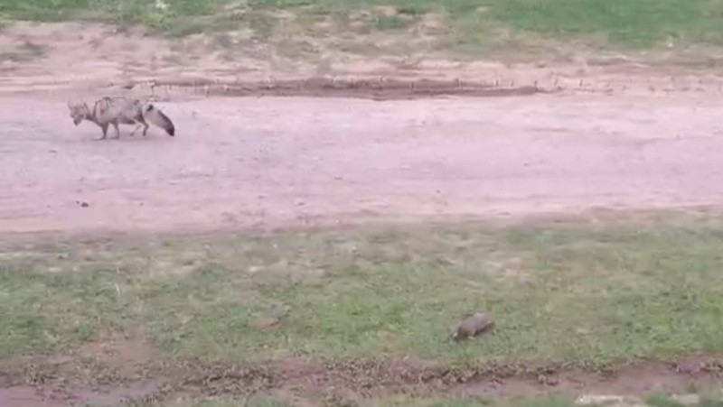 Se procedió a hacer un rastrillaje por las inmediaciones del predio en procura de la madre del cachorro, la que fue encontrada. Se depositó al zorrito a pocos metros y la madre lo recogió y los puso a resguardo.