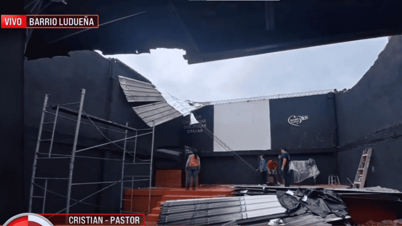 “Los encargados de la alabanza llegaron temprano a ensayar y se encontraron con que la mitad del techo se había desmoronado. Cuando nosotros llegamos empezamos a retirar las sillas y ventiladores, que se habían roto, y en ese momento se desmoronó la otra parte”, relató en De 12 a 14 (El Tres), el pastor Cristian.