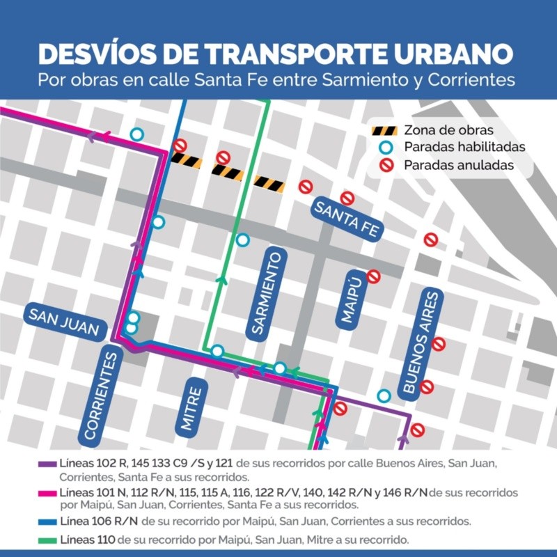 El tramo a intervenir comprende dos paradas del transporte urbano de pasajeros, ubicadas en Santa Fe y Entre Ríos, y Santa Fe y Corrientes. La reconstrucción de las dársenas consiste en la reconversión de la carpeta asfáltica convencional a losas de hormigón de alta resistencia que garantizan mayor durabilidad, en relación con las posibles fisuras que se ocasionan en el pavimento como consecuencia de la carga, el peso y las constantes frenadas de los colectivos.