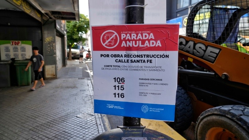 Este martes temprano se iniciaron las obras de reconstrucción de calle Santa Fe en el microcentro de Rosario, con un corte total de tránsito y desvíos del transporte público en el tramo de Sarmiento a Corrientes, según informó el municipio. Se estima que la intervención se extenderá hasta marzo próximo.