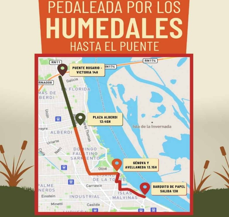 Se anunció una pedaleada, marcha sobre el puente Rosario Victoria, intervenciones artísticas, charlas y un acampe que incluirá astronomía por la noche. Ahora todo eso quedó suspendido.