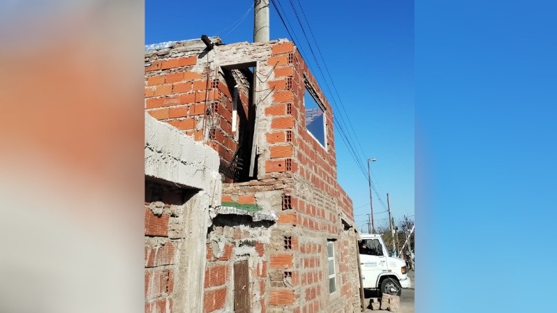 Una casa ubicada sobre las vías del ferrocarril, en inmediaciones de Juan José Paso y San Gerónimo, en la zona noroeste de Rosario, fue chocada por segunda vez en los últimos dos años. La construcción, que tiene la particularidad de tener una columna de alumbrado público dentro del domicilio, estaba sin terminar por el siniestro vial anterior, que tuvo lugar en noviembre de 2023, cuando un patrullero se incrustó en el inmueble.