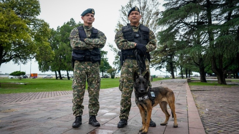 Más allá de la lluvia y el gris del cielo, fue impresionante el despliegue de tropas federales y de vehículos que se llevó a cabo en el Monumento. El operativo también incluyó botes de Prefectura. Y desde el cielo también se vigiló el acto en el que Bullrich anunció medidas para Rosario.
