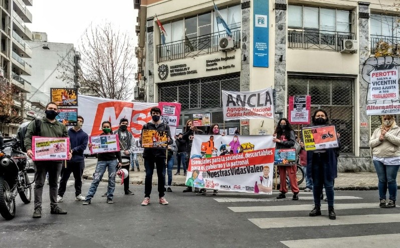 Este lunes, en la sede local del Ministerio de Trabajo de Santa Fe, un grupo de jóvenes trabajadores precarizados organizaron una protesta, en el marco de una jornada de reclamo que se replicó a nivel nacional. Eran repartidores, docentes reemplazantes, camareros, que pedían por cobertura médica y que “las empresas dejen de despedir y de recortar salarios”.