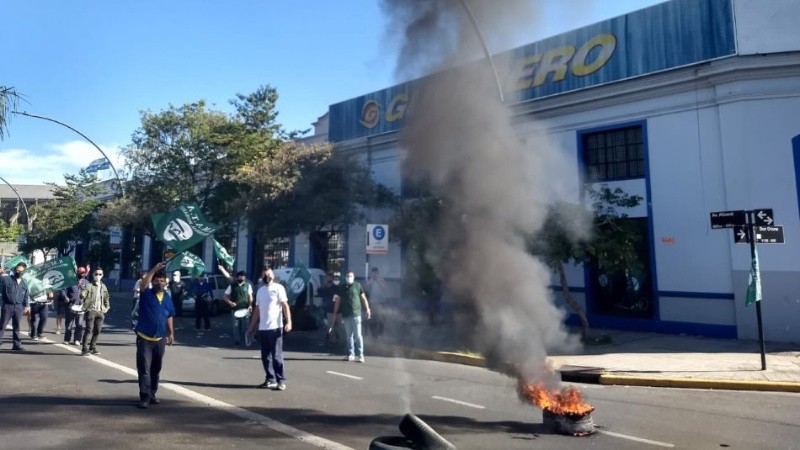 Trabajadores de Guerrero Motos cortaron avenida Alberdi a la altura de Don Orione, frente a esa firma, para protestar por una reducción de salarios y “hostigamiento” laboral.