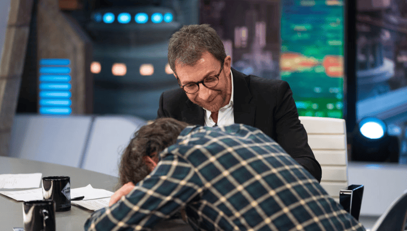 Mientras bromeaban, el invitado apoyó la cabeza sobre la mesa como si se hubiera quedado dormido. El conductor del programa, preguntó en voz alta: “¿Pero qué le pasa a este hombre?”. Pasados unos segundos, Évole se recompuso y continuó riéndose. “Ya está”, dijo ni bien levantó la cabeza.