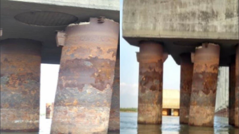 Una foto que volvió a virilizarse. Se trata de una imagen que hace años dio vuelta y ahora regresa a los celulares y redes sociales. Se puede ver uno de los pilotes del puente Rosario-Victoria averiado y la sensación que transmite es que se puede venir abajo.
