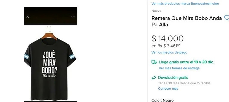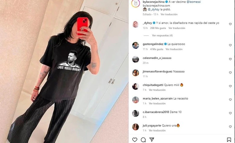 En Instagram también se vieron ofertas, como la de la diseñadora, DJ e influencer Coneja China (Ana Moreno Hueyo), que publicó una foto luciendo un diseño propio con la frase del Diez y en su página web la vende a $8500.