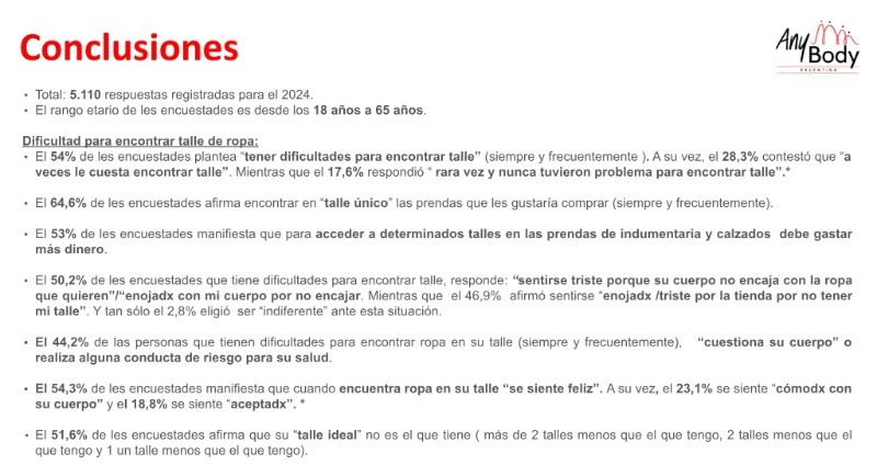 De esta forma la encuesta, que se realizará hasta fines de noviembre y cuyos resultados estarán listos en el inicio de 2026, nació de la información recogida de trabajos anteriores. “Después de los resultados de la última encuesta que realizamos el año pasado sobre la primera dieta, sobre lo qué hacés cuándo no encontrás ropa en tu talle y cómo te sentís, obtuvimos datos alarmantes, y por eso decidimos profundizar”, advirtió la socióloga activista gorda, de la diversidad corporal y transfeminista.