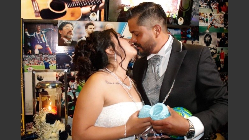 ¡Que vivan los novios! En #Puebla se cansaron la primer pareja bajo la mano de dios, Diego Armando Maradona.