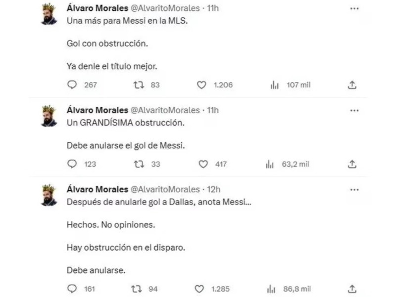 Sin embargo, esto no basta para los detractores del argentino campeón del mundo, entre ellos el periodista guatemalteco y nacionalizado mexicano Álvaro Morales, que en sus redes sociales ha criticado en repetidas ocasiones a Messi.