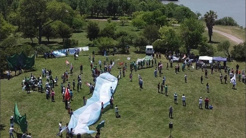 La caravana partió del Monumento a la Bandera y se dirigió a Punta Quebracho, en Puerto General San Martín, con la participación de una multiplicidad de organizaciones sociales.