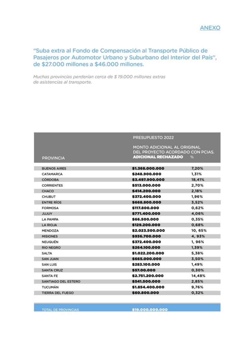 Luego compartió un documento con los números y adelantó que este lunes enviará a cada gobernador de manera individual el informe para que tomen la decisión correspondiente.