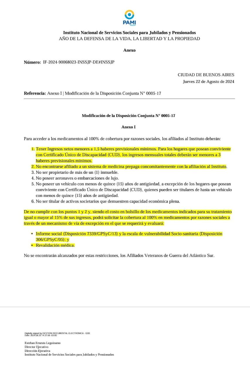 “Si necesitan tomarlo de forma prolongada, pueden ir a Pami con una planilla que el médico de cabecera le va a entregar y conseguir una excepción para que le cubran el 100 por ciento del valor”, sostuvo y profundizó: “Los médicos de cabecera tienen una planilla que completan y con esa planilla en cualquier delegación, cumpliendo algunos requisitos que tienen que ver con los haberes que perciben y las propiedades a su nombre, pueden obtener la excepción y la cobertura del 100% de los medicamentos. Era un mecanismo que se utilizaba hasta antes de la pandemia”.