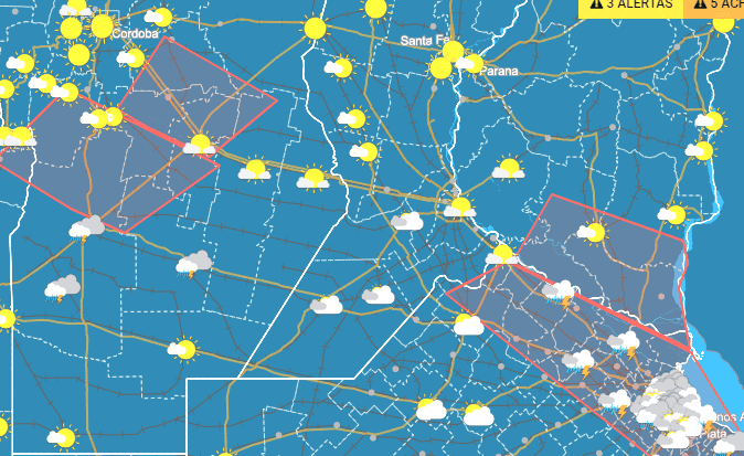 "Sobre el sur del área de cobertura se registran tormentas aisladas, algunas localmente fuertes. Se espera que en el transcurso de la madrugada de este sábado 30 comiencen a generarse nuevas tormentas sobre el norte de Santa Fe, Chaco, Corrientes y el este de Formosa, estas estarán acompañadas de caída de granizo, fuertes ráfagas, importante actividad eléctrica y abundante caída de agua en cortos períodos", indica el parte.