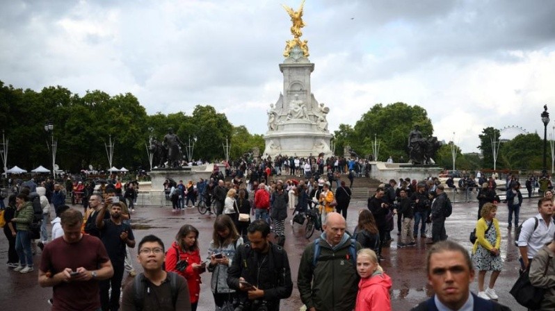 Desde el mediodía, fuera del Palacio de Buckingham la multitud se agolpó a pesar de la lluvia torrencial, informó la Asociación de la Prensa británica.