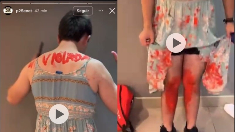 El adolescente llevaba un vestido roto y el cuerpo pintado con manchas rojas que simulaban sangre, mientras que, en la espalda, tenía escrita la palabra “violada”.