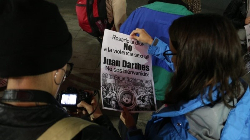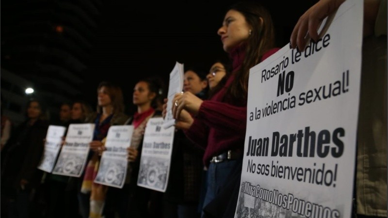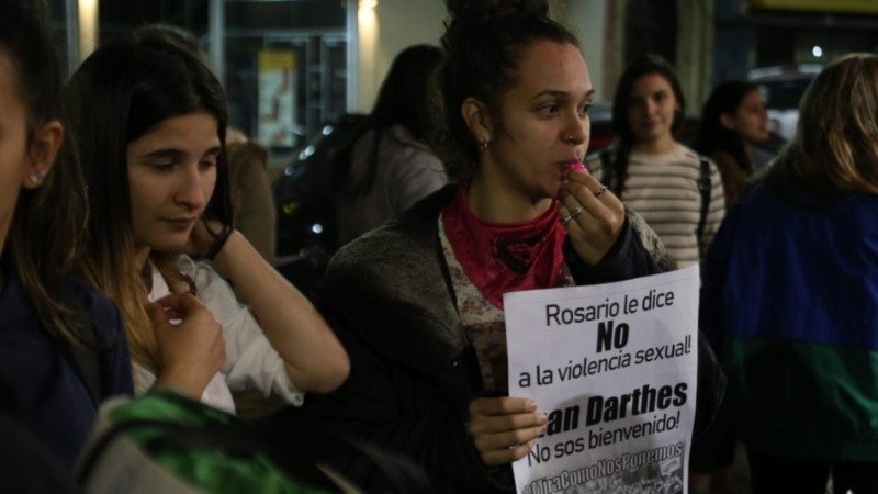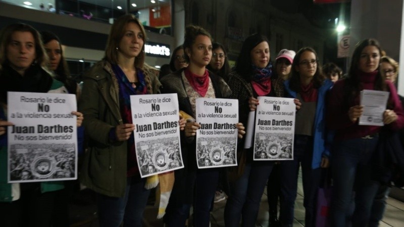 Un grupo de mujeres contra la violencia sexual se manifestó este viernes en avenida Pellegrini y Corrientes contra la estadía de Juan Darthés en Rosario. La convocatoria fue lanzada por la campaña por la Emergencia Nacional en violencia contra las mujeres y aclararon que se trató de una “manifestación pacífica”.