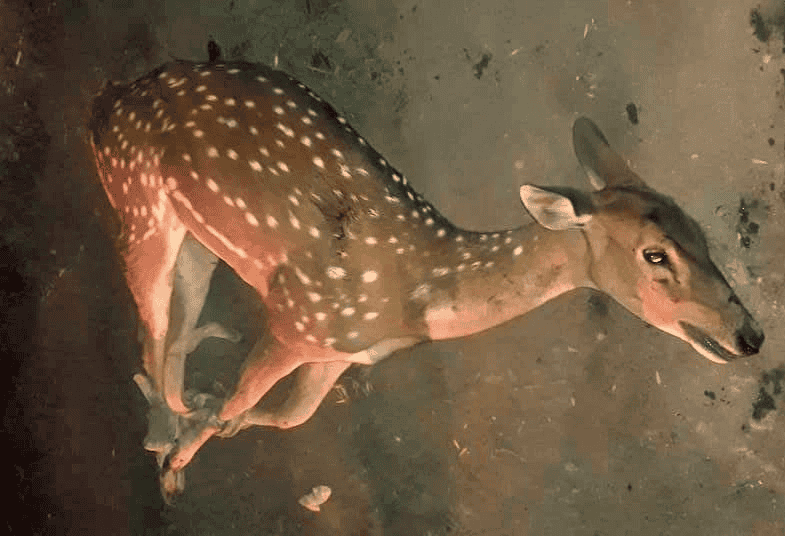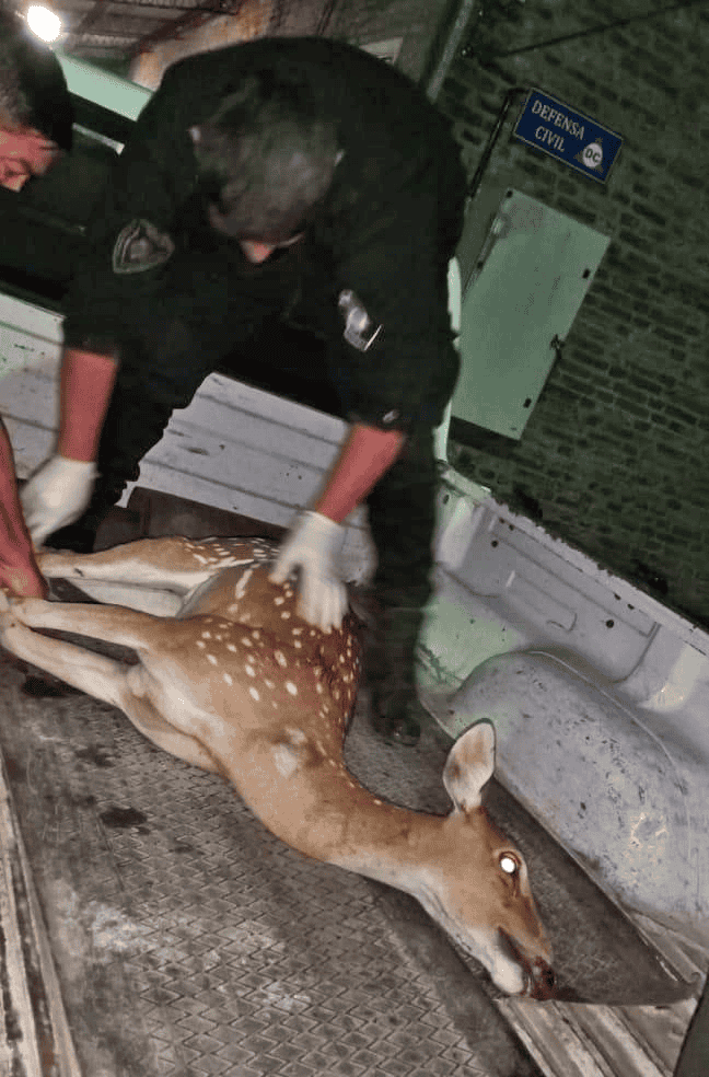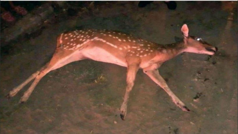 El ciervo estaba tendido sobre el suelo, con heridas en sus patas que. Según informan fueron producidas por mordeduras de perros.