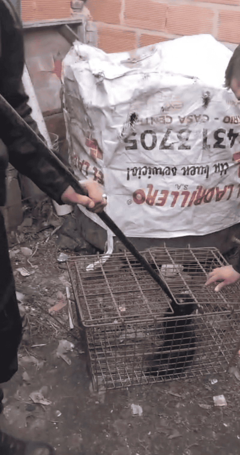 Al llegar al lugar, los efectivos entrevistaron a una vecina, quien señaló que el animal, un ejemplar de gato montés bebé de aproximadamente cuatro meses, se encontraba atrapado dentro de un tanque de agua.