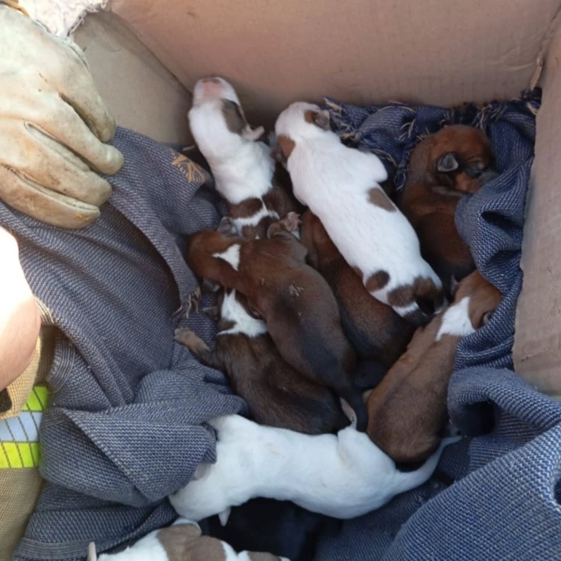 En Pérez, bomberos voluntarios rescataron a más de diez cachorros que habían quedado atrapados en una zanja debajo de un puente, en zona de Entre Ríos y Las Campanillas.