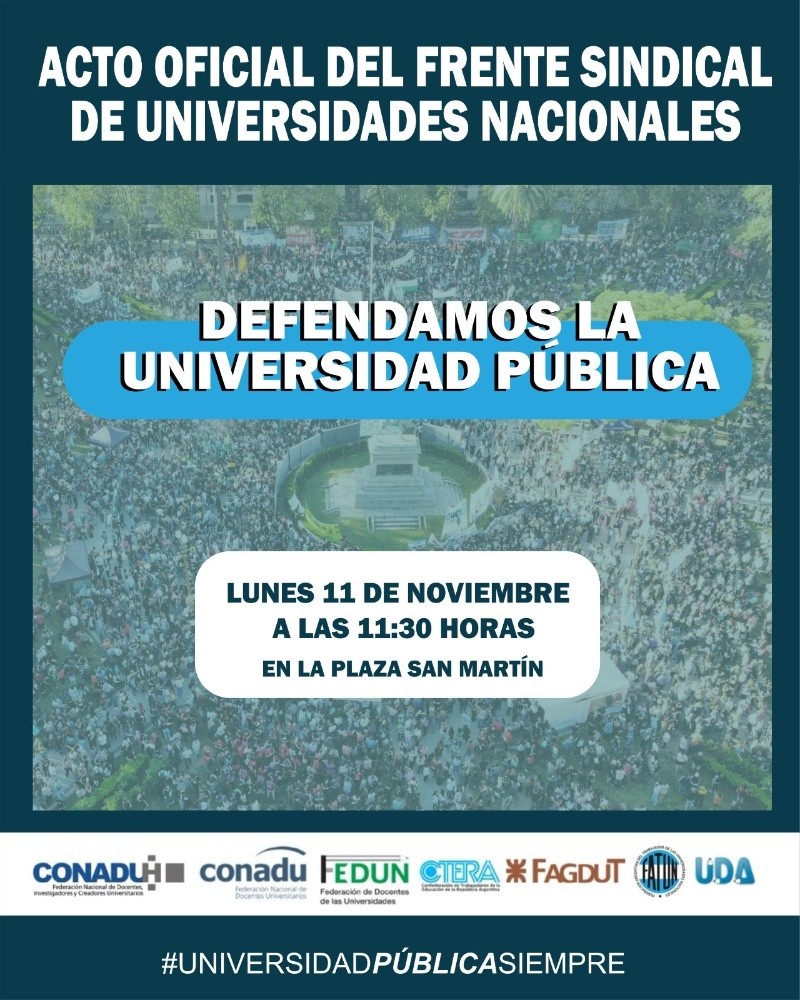 “Frente a la persistente falta de respuestas del Gobierno nacional en relación con las demandas salariales y presupuestarias de la comunidad universitaria, el Frente Sindical de Universidades Nacionales ha decidido impulsar acciones regionales para conformar un plan de Lucha Federal Universitario durante noviembre”, detalló el gremio no docente en un comunicado.