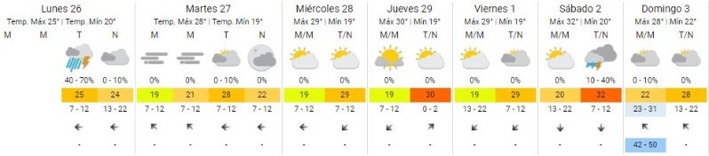 Para el sábado, si bien hay anuncio de probables tormentas vespertinas, se espera una calurosa máxima de 32 grados que volvería a moderarse para el domingo luego de eventuales nuevas lluvias.