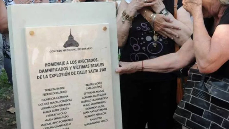 El homenaje a las víctimas había sido colocado por el Concejo el 4 de abril de 2014 en Oroño a la altura de Salta, a pocos metros del lugar donde se produjo la explosión y derrumne que dejó 22 muertos el 6 de agosto de 2013.