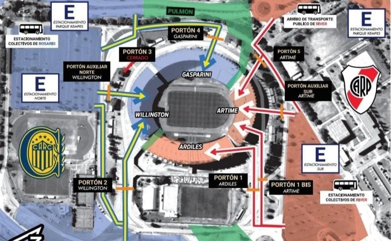 Además, detallaron que el operativo de seguridad prevé que los hinchas de Central ingresen por el acceso norte del Mario Alberto Kempes. Esto es por Rafael Nuñez y Circunvalación Norte.