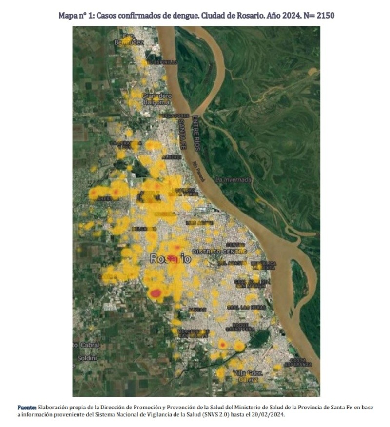 Según se comunicó oficialmente este viernes, se confirmaron casos de dengue en los 19 departamentos de la provincia, siendo el departamento Rosario el que concentra el 68,9% de los contagios.