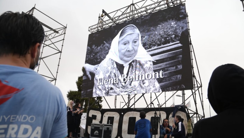 En el escenario también se proyectaron algunos videos alusivos a la dictadura y también hubo uno para recordar a Juane Basso, militante de Hijos Rosario fallecido a comienzos de este mes.