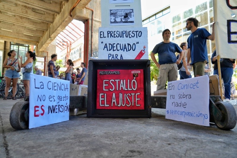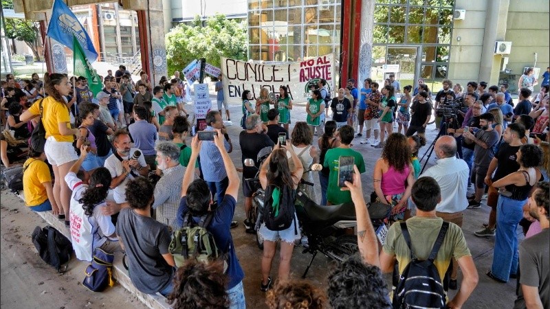Este martes se llevó a cabo en todo el país una jornada de protesta en defensa del Conicet. En Rosario, se llevó a cabo en el Polo Científico, de Ocampo y Esmeralda (Ciudad Universitaria) con una radio abierta y distintas acciones de concientización por la continuidad de la institución, actualmente sin presupuesto y sin algunos de sus investigadores y empleados administrativos; entre ellos, una rosarina que contó que se enteró que vencía su contrato por el decreto 84, a través del cual el gobierno nacional desvinculó a parte del personal y dejó en vilo a varios becarios.