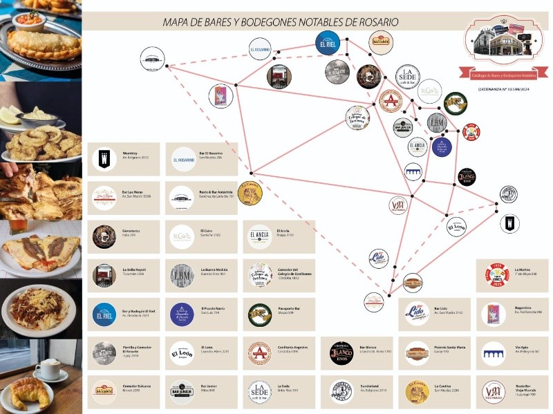 En un principio el catálogo estará integrado por 29 bares ubicados en diferentes barrios de la ciudad, que son punto de referencia en las zonas donde están emplazados: El Riel, El Resorte, Comedor Balcarce, Gorostarzu, La Bella Napoli, Il Piccolo Navío, El León, Junior, El Cairo, La Buena Medida, Olimpo, Pasaporte, Confitería Augustus, La Sede, El Ancla, Comedor del Colegio de Escribanos, La Marina, Bar Blanco, Sunderland, Wembley, Las Heras, Bar Lido, Pizzería Santa María, La Cautiva, El Rosarino, La Antártida, Rugantino, Vía Appia.