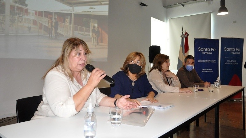 La secretaria de Obras Públicas, Leticia Battaglia, acompañó a las ministras de Infraestructura Silvina Frana y a Adriana Cantero, de Educación. En la presentación, Bataglia afirmó: “Estoy muy satisfecha con esta obra, porque es una obra emblemática con un alto valor histórico, y diseñamos este proyecto con la nueva espacialidad educativa post pandemia, por eso, el desafío es rehabilitar el edificio histórico, y construir la nueva escuela".